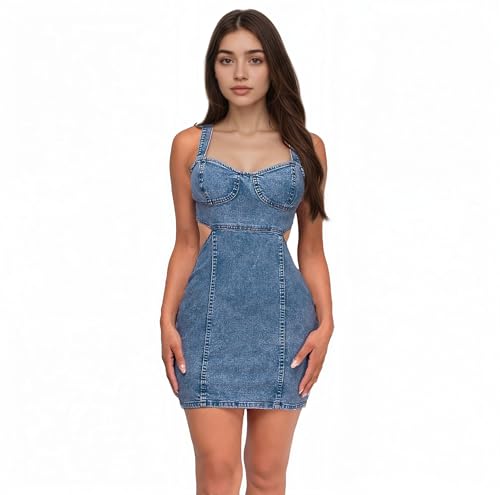 More information about JWJP&CCYIQI Denim Bodycon Dress One Piece Cut Out Sleeveless Jean Mini Dresses