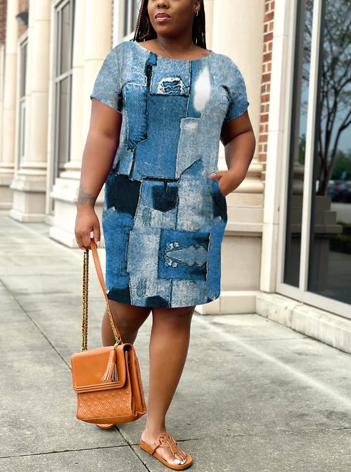 PINSV Women Plus Size Summer T Shirt Dresses Short Sleeve Casual Tunic Dress with Pockets 4
