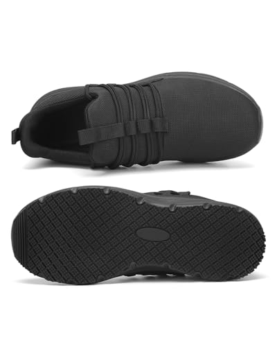 • COMFORT & SUPPORTIVE: Our black kitchen shoes featuring breathable, lightweight knitted upper and shock-absorption EVA midsole to keep your feet cool and without fatigue through those long shifts.