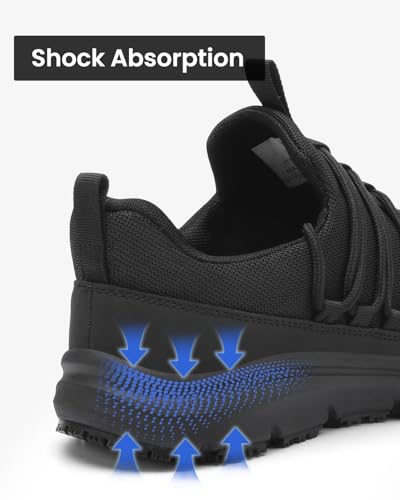 • NON-SLIP: These slip resistant work shoes for men have your back with patterned rubber outsoles, giving you excellent traction on wet, oily, and greasy floors, minimizing the risk of slips and falls so you can hustle worry-free in busy spots.