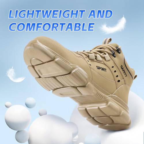 • 【Lightweight & Comfortable】Weighing under 500 grams per boot, these lightweight work boots ensure all-day comfort. The soft, lightweight EVA sole and modern design eliminate the bulkiness of traditional safety shoes, combining protection with style.