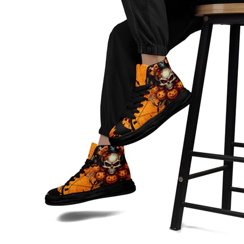 High-Top Canvas Platform Sneakers for Casual Walking, Women's Halloween Design Chunky Shoes Elevated Trainers 7
