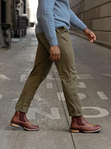 Men's Western Cowboy Boots Square Toe Durable Retro Classic Embroidered Pull On Boot Casual Work Chelsea Short Boots 4