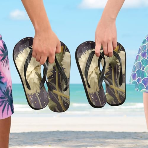 White Flower Painting Flip Flop Sandal for Women Men, Casual Beach Slippers Indoor Outdoor XS 7