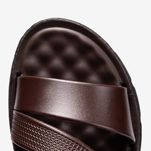 Men's Leather Fashion Sandals Open Toe Slingback Adjustable Ankle Straps Non-Slip Soft Comfortable Slide Sandals Slip-On Beach Sandals 6