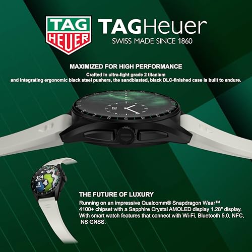TAG Heuer Smart Watch, Fitness Watch, Connected Calibre E4 42 mm Golf Edition, Touch Screen, Waterproof, Calls, SMS, Steps, Heart Rate, Wellness, Titanium, White Or Black/Green Straps, SBR8080.EB0284 5