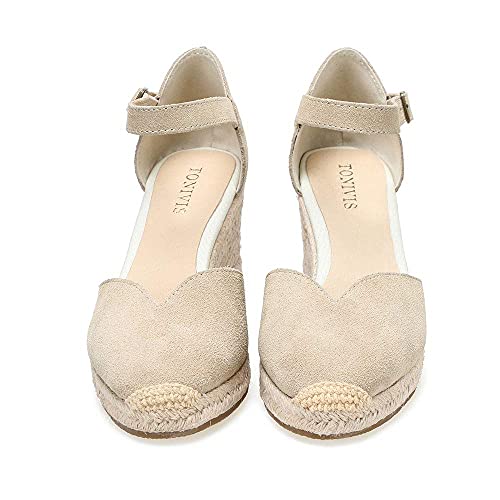 • FEATURES – Wedges shoes for women, ankle strap adjustable buckle, front wrap, closed toe, classic espadrille shoes. Heel measures approximately 2.18".