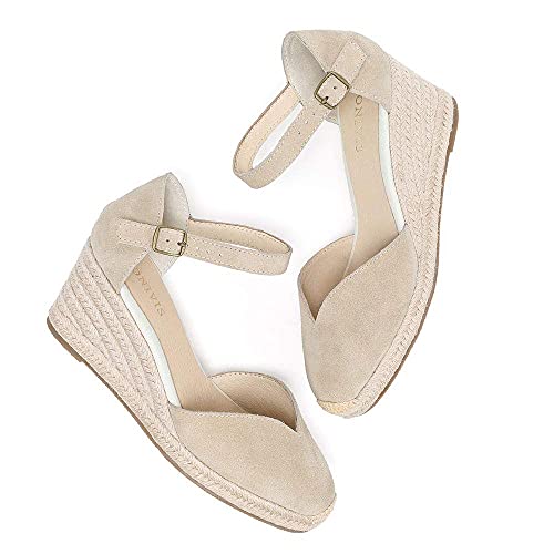 Platform Wedges Sandals for Women, 3" Wedge, Ankle-Strap, Cap Toe, Summer Espadrilles Heel Shoes 5