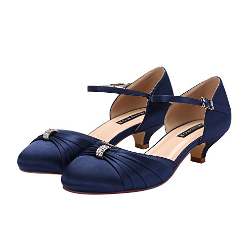 More information about ERIJUNOR Women Comfort Low Kitten Heel Buckle Ankle Strap Satin Bridal Wedding Shoes