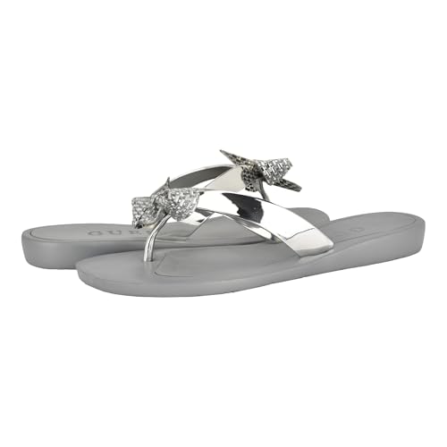 • Give your feet a rest and slide on a pair of the Tata by GUESS. Sweet and chic, this warm-weather staple is sprinkled with sparkle and has a bow on the straps for added flair. Est. 1981, Guess is a global lifestyle brand and a symbol of a young, adventurous lifestyle.