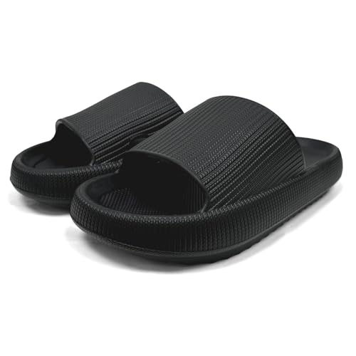 • Thickened Soft Sole: The thickness of the sole of our slides sandal is 1.57 inches - 4cm, the super resilient thick sole wraps around the entire foot and absorbs shock, providing excellent shock absorption and cushioning to keep your feet safe
