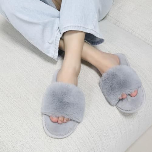 Generic Women's Fuzzy Open-Toe Slippers - One Size, Lightweight, Non-Slip, Ideal Gift for Women 5