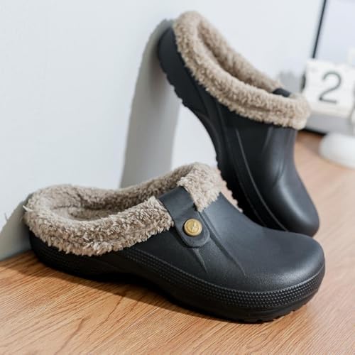 HOT ! Fur Lined Clogs for Women Slip on Faux Fur Fluffy Plush Indoor Outdoor Slippers Memory Foam Pillow Slippers Warm Winter Shoes Waterproof Mules Fuzzy Sherpa Slipper