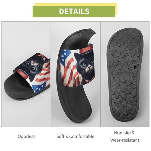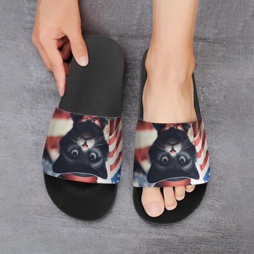 Black Cat U.S. Flag Funny House Sandals Non Slip Shower Slippers Quick Drying Bathroom Shoes for Women Men 7