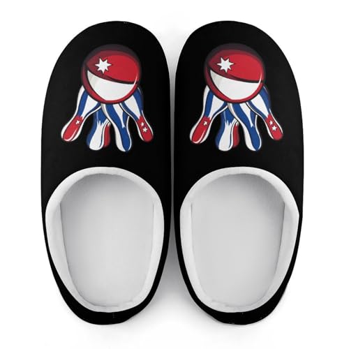 HOT ! Bowling Pins And Ball Womens Cotton Slippers Warm House Shoes for Indoor Outdoor