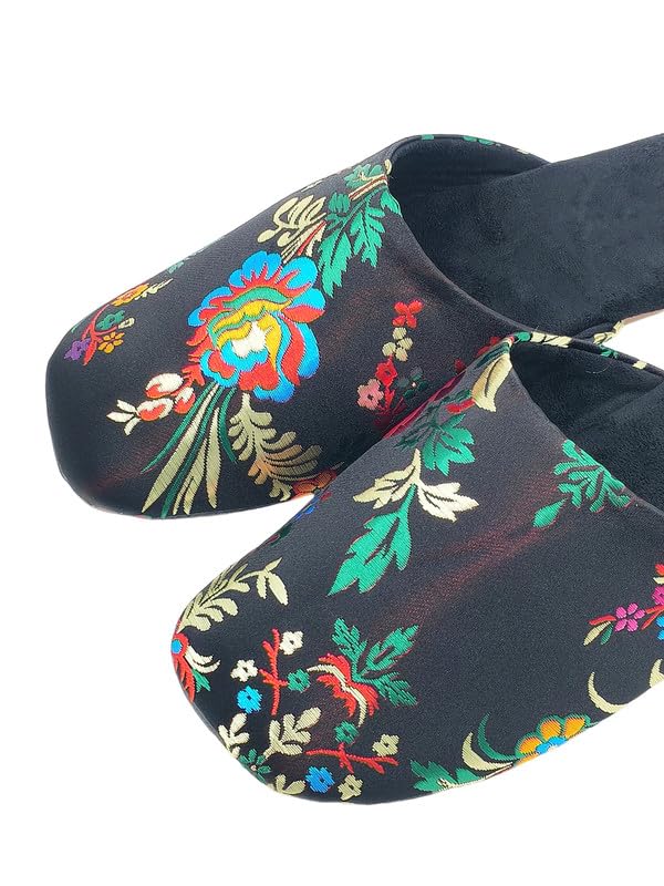 More information about Women's Embroidered Satin Closed-Toe House Slippers - Comfortable Indoor Slides