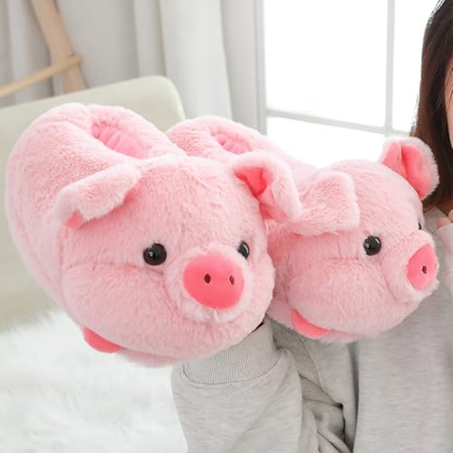 HOT ! Pig Slippers, Cartoon Couple Full-Heel Warm Shoes for Outdoor Indoor, Non-Slip Plush Cotton Slippers for Autumn Winter