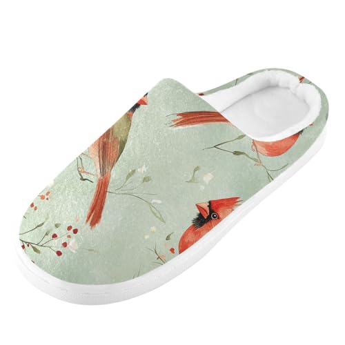 JUNZAN Aesthetic Northern Red Birds Sage Green Women Cotton Slippers Non Skid Memory Foam Bedroom Shoes for Outdoor Christmas Presents 6-7 5