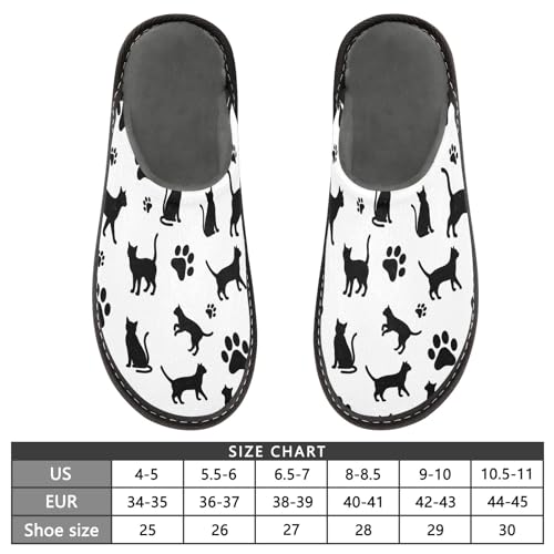 ODAWA Black Cat Paw Prints White Memory Foam House Shoe Slippers for Elderly Women, Slip On House Shoes for Women Size 4-5 7
