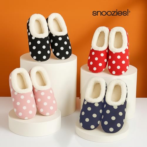 HOT ! Snoozies Faux Fur Polka Dots Slippers for Women Indoor, Soft Sherpa-Lined House Slippers, Cute House Shoes for Women