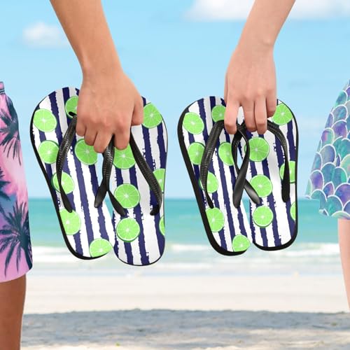 HOT ! Lime Blue Stripe Flip Flops for Beach Thong Sandals Anti-slip Lightweight Beach Shoes for Summer Outdoor Travel