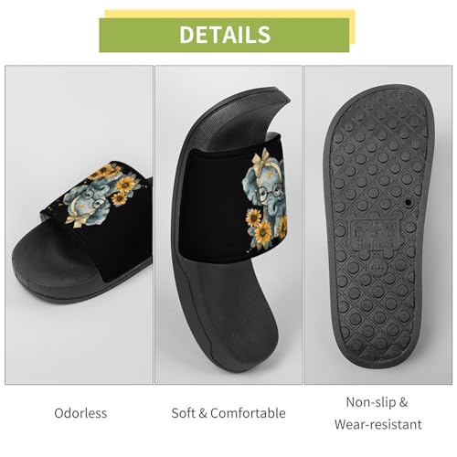 Elephant Sunshine Sunflower House Sandals Non-Slip Bathroom Slippers Beach Summer Shoes for Men Women 6