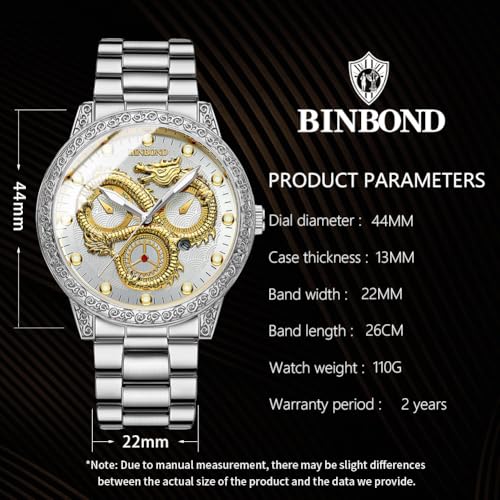 • ⌚BINBOND Brand After-Sale Assure: We offer 30-day no-questions-asked exchange and return and 2-year warranty service for this men's watch. If you encounter any problems during the use of the watch, please feel free to contact us.