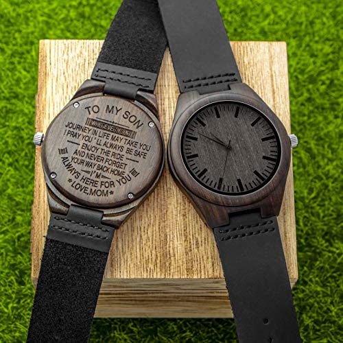 • ♥Personalized Wood Watches Gifts For Son , Engraved Handmade Mens Wood Watches for Son From Mom Christmas Anniversary Graduation Gifts