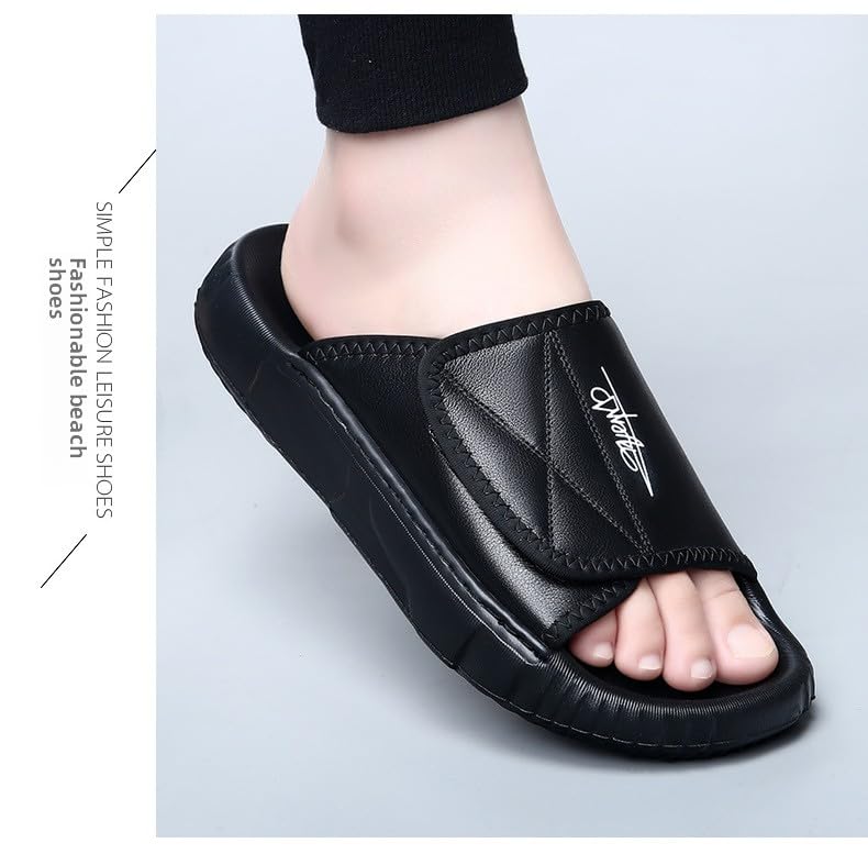 HOT ! Men's Leather Sandals Summer Casual Slides with Soft EVA Sole for Indoor/Outdoor Comfort (Black/White/Green, Sizes 38-45)