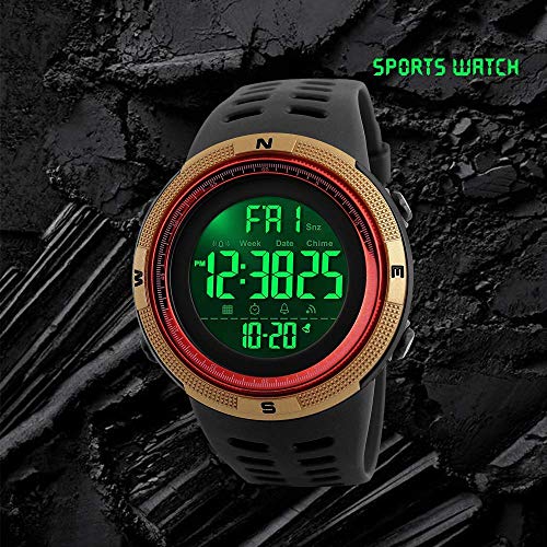 Men's Digital Plastic Sports Watch Waterproof Military Stopwatch Countdown Watches for Men (Gold Red) 5