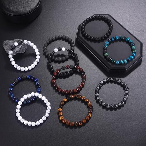 • Mens Bracelets Beads:The mens bead bracelet owns 10 styles and comprises many kinds of stones.Made of high-quality natural stones like tiger eye,black onyx,howlite,lava rock and blue onyx,these accessories are designed delicately and beautifully.