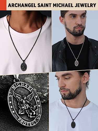 FaithHeart Saint Michael Necklace, Stainless Steel/18K Gold Plated St Michael the Archangel Pendant Amulet for Men Women with Gift Packaging 5