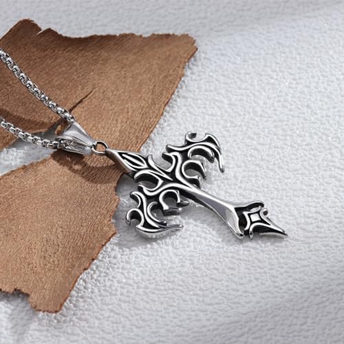 • Gothic Cross: Unique flame cross necklace that suitable for men women is full of charming and cool; And various mens cross necklaces are available to be chosen and paired it with your favorite chain necklace