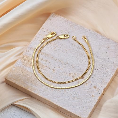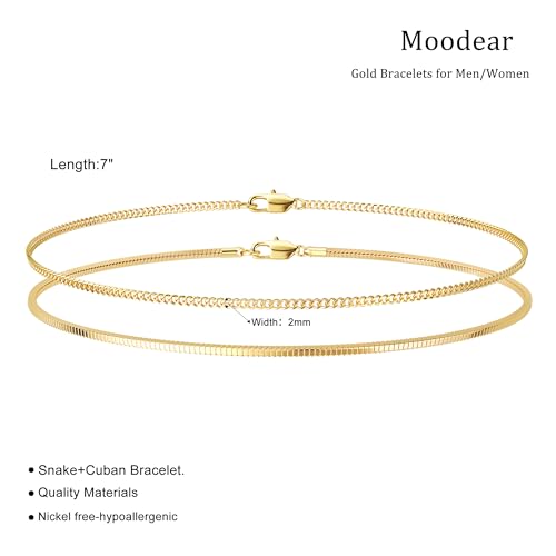 HOT ! Moodear Stack 6.5-8In Mens Bracelet Set - Dainty 14K Gold Plated 2mm/5mm Snake Cuban Figaro Chain Bracelets for Men Jewelry Gift
