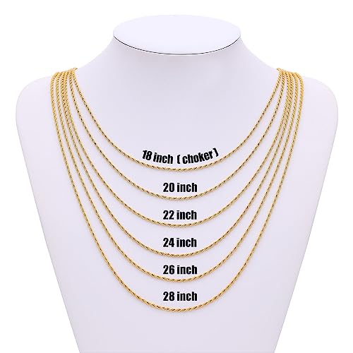 HOT ! Fiusem Gold Plated Rope Chain for Men, 18K Gold Plated Chain Necklace, Stainless Steel Necklace for Men and Women