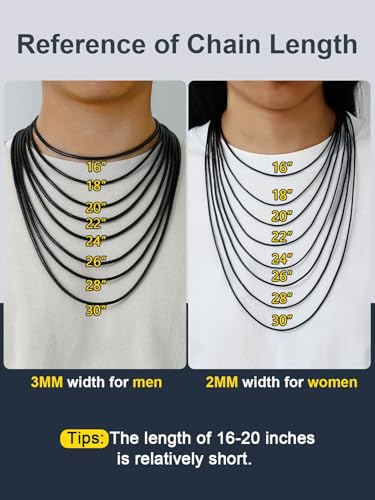 ChainsPro Men Waterproof Braided Leather Necklace Wax Rope Chain, Customize Available, 2/3mm Width, With Snap Clasp, 16”18" 20" 22" 24" 26" 28" 30"-Send Gift Box 4