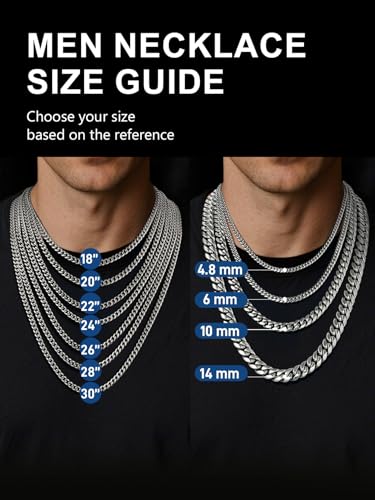 • Precise Sizing: Available in 4.8mm/6mm/10mm/14mm widths with 14-30 inch lengths. Pro Tip: Women prefer 14-20 inch (14 inch ideal for women's choker styles), while 22-24 inch fits most men's necks comfortably, so choosing a larger size for wearing will be more comfortable.Actual measurements may vary slightly due to measurement errors - refer to sizing chart.