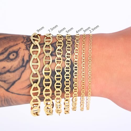 Nuragold 14K Real Yellow Gold Solid Mariner Chain Anchor Link Bracelet 7"-9" (2mm-7.5mm) Italian Jewelry for Men & Women 7