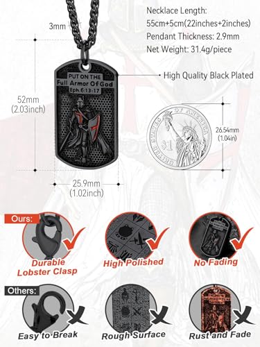 • Premium Material: Crafted from high-quality 316L stainless steel, this Armor of God necklace is tarnish-resistant, hypoallergenic, and safe for sensitive skin. Durable and long-lasting, it’s designed to withstand daily wear while maintaining its polished finish
