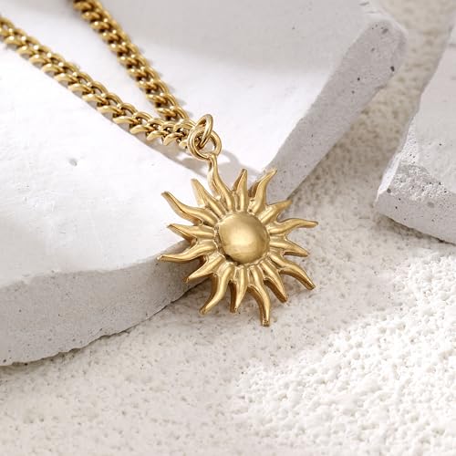 • Stunning Sun Design & Long-Lasting Shine: Features a beautifully crafted sun pendant on a premium stainless steel chain. Multi-layer plating (18K Gold/925 Silver) offers brilliant shine with excellent fade and tarnish resistance, keeping it looking bright like new.