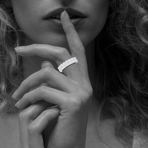• Ring Band for Women- 3mm round cut cubic zirconia, the total width of 1 row is 3.25mm. You can wear it as an anniversary band, eternity ring, statement ring or right-hand fashion ring.