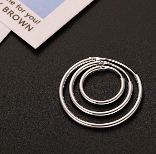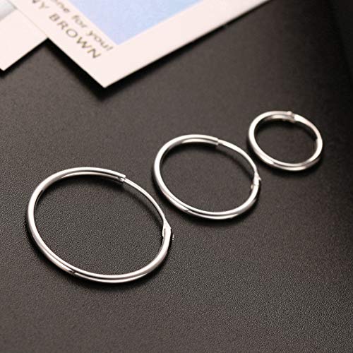 Sllaiss 3 Pairs 925 Sterling Silver Small Hoop Earrings For Women Men Round Endless Hoop Earrings Set Lightweight 10MM 15MM 20MM 6