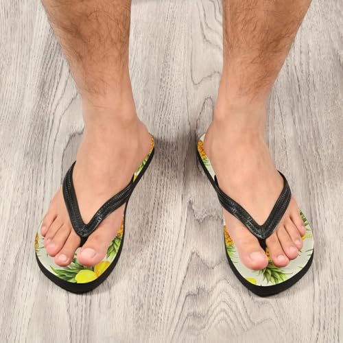 HOT ! Pineapple Hibiscus Floral Beige Flip Flops for Beach Thong Sandals Anti-slip Lightweight Flat Slippers for Summer Swim Travel