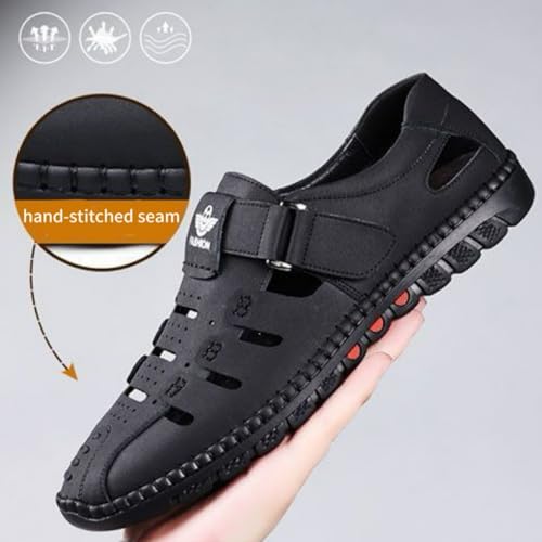 2025 Men's Stylish Causal Leather Hollow Sandals, Outdoor Closed Toe Beach Shoes, Comfort Anti-Slip Sport Sandals 6