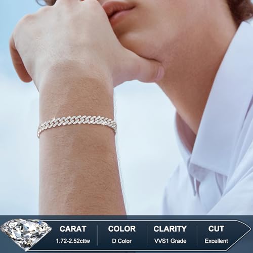 1.72-2.52 Carats Moissanite Bracelet for Men, 6MM Moissanite Cuban Bracelet 18K White Gold Plated 925 Sterling Silver Simulated Diamond Cuban Link Bracelet D Color VVS1 Round Cut Bling Iced Out Miami Link Bracelet w/ Box Clasp 6-9 Inch 5