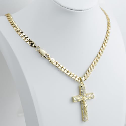 14k Gold-Plated Cuban Figaro Chain with Jesus Christ Crucifix, Cross Necklace for Men And Women,24 inches Long and 6mm wide 5