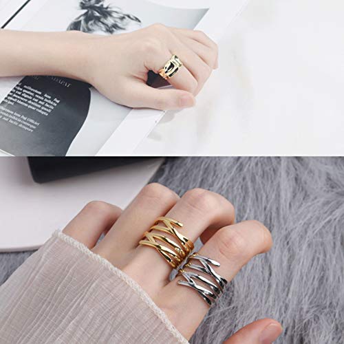 YBMYCM 3-10Pcs Dome Rings Set Chunky Gold Ring for Women Men 14k Gold Plated Thick Adjustable Statement Ring Gold/Silver 6
