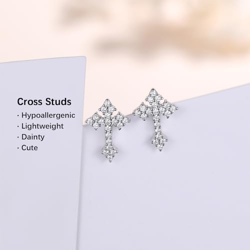 HOT ! Sterling Silver Cross Stud Earrings for Women Men, CZ Cross Stud Hypoallergenic Jewelry Gift