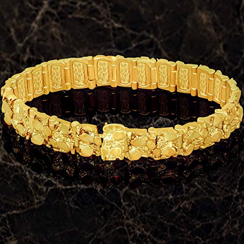 • These Luxurious 13mm ( ~1/2 inch ) Gold Nugget Bracelets are Made To Last with up to 20X more 24 karat real gold plating than standard electroplated fashion jewelry; Show off your Opulent taste with this Bold and Ornate Michoacan design