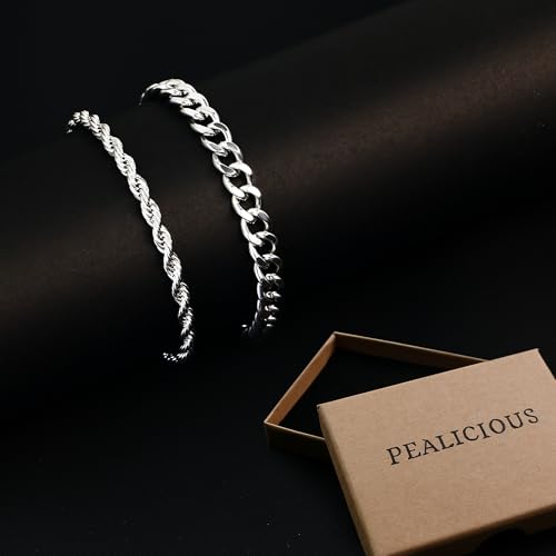 • Mens Bracelet: This silver bracelet for men set features a sleek silver cuban chain and a rope chain. Whether worn individually or stacked together, which can offer a versatile style and sophisticated charm.